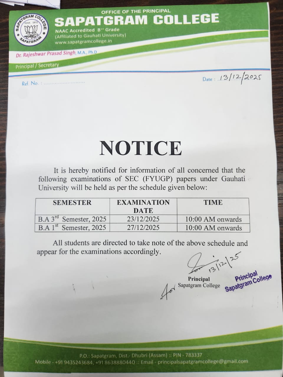 • Notice for 1st and 3rd Semester SEC(FYUGP) examination held on 27/12/2025 and 23/12/2025  Click Here