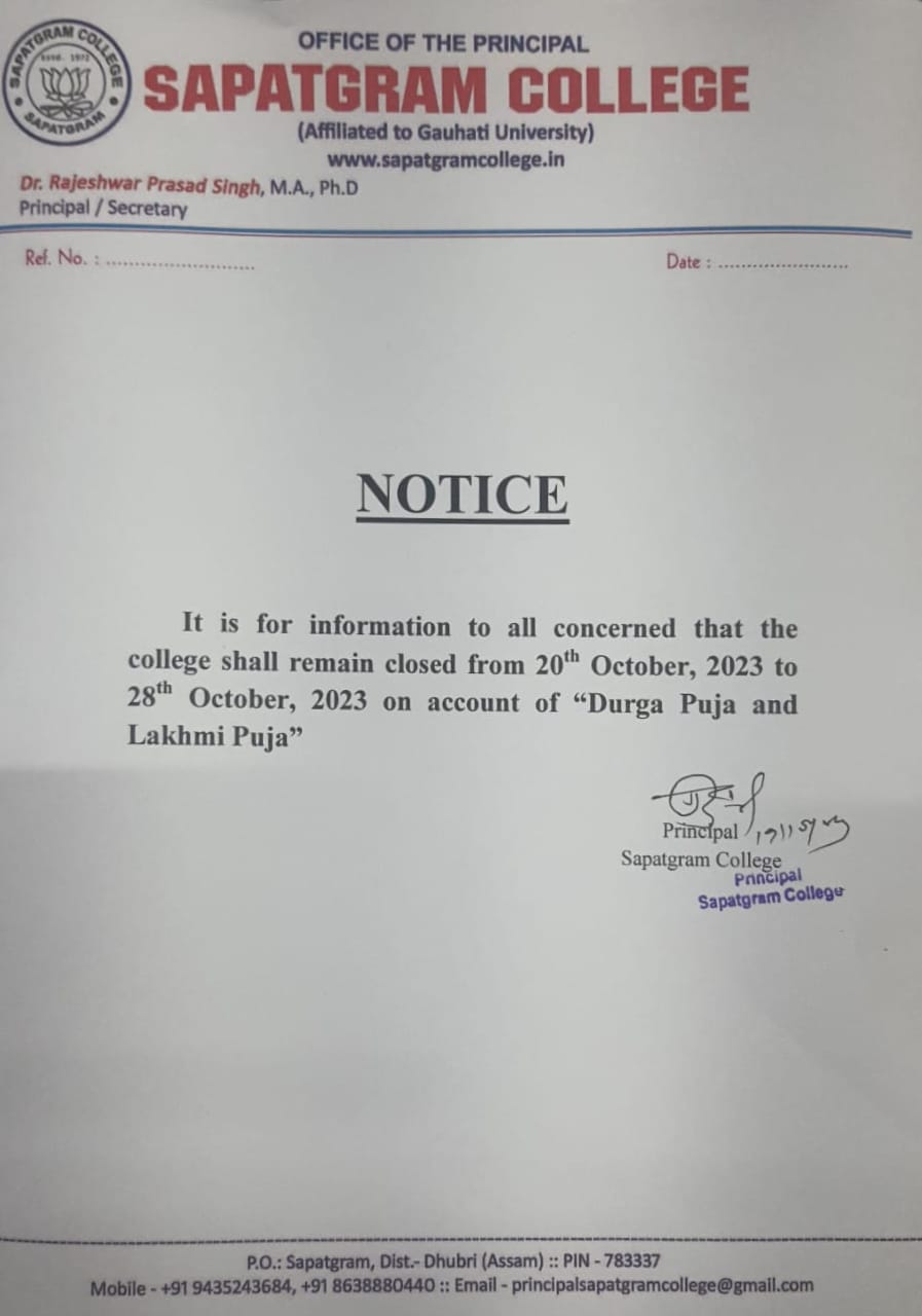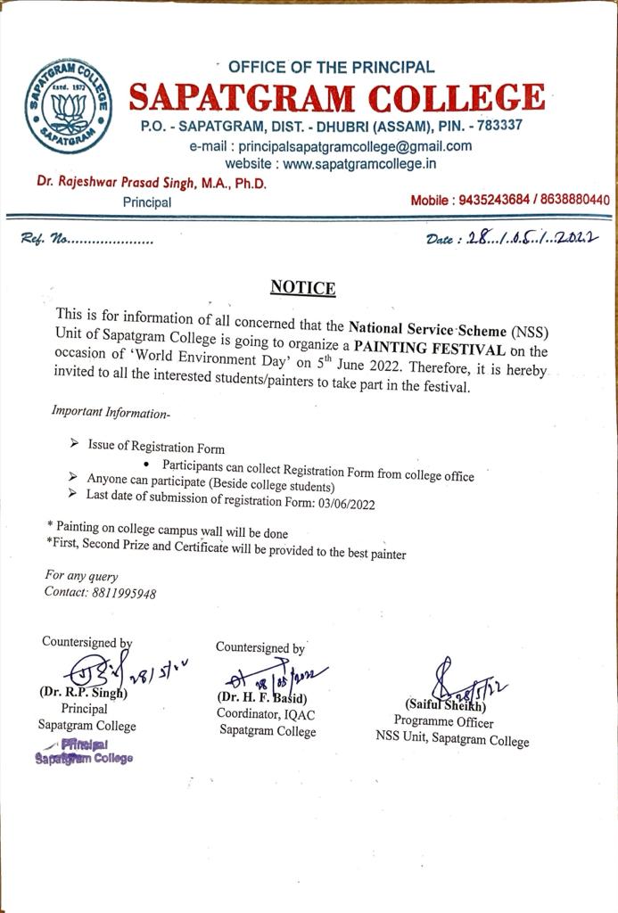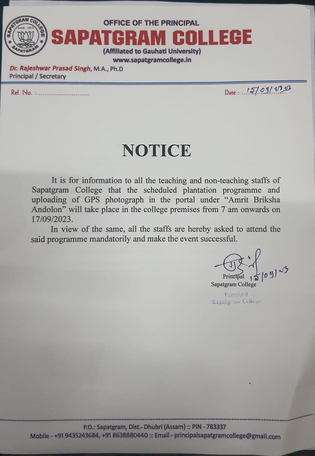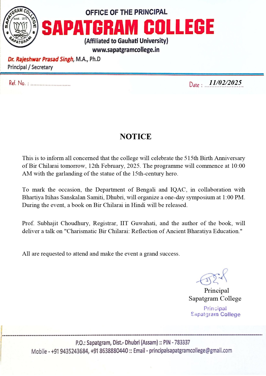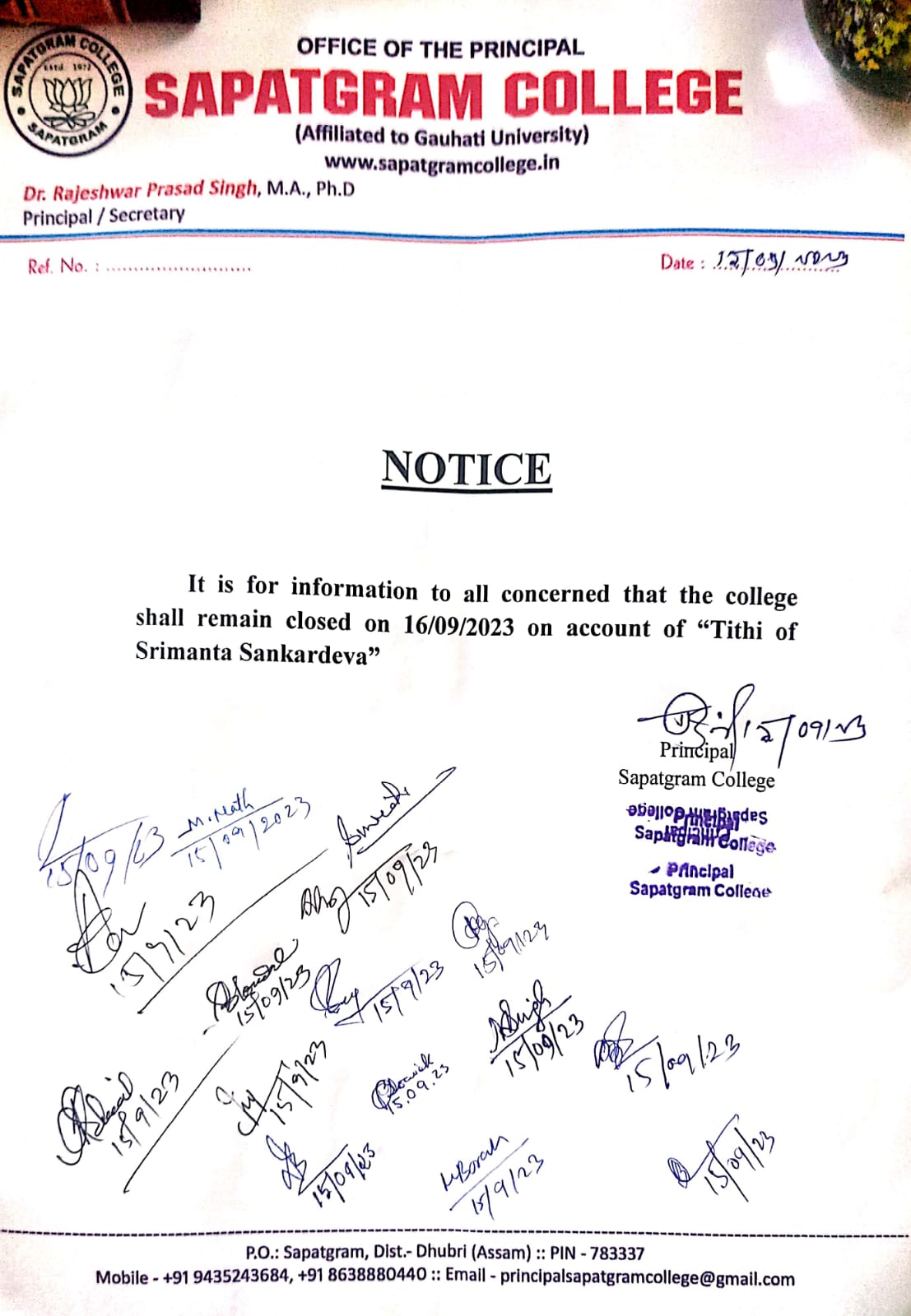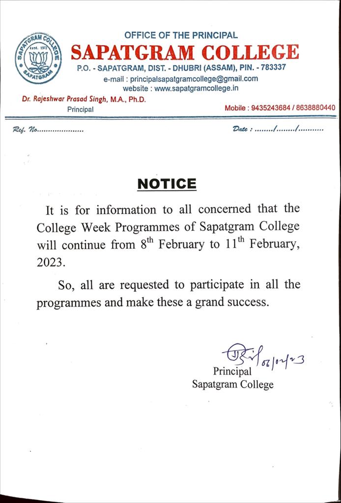 - Notice regarding Celebration of 54th Foundation Day of Sapatgram College View