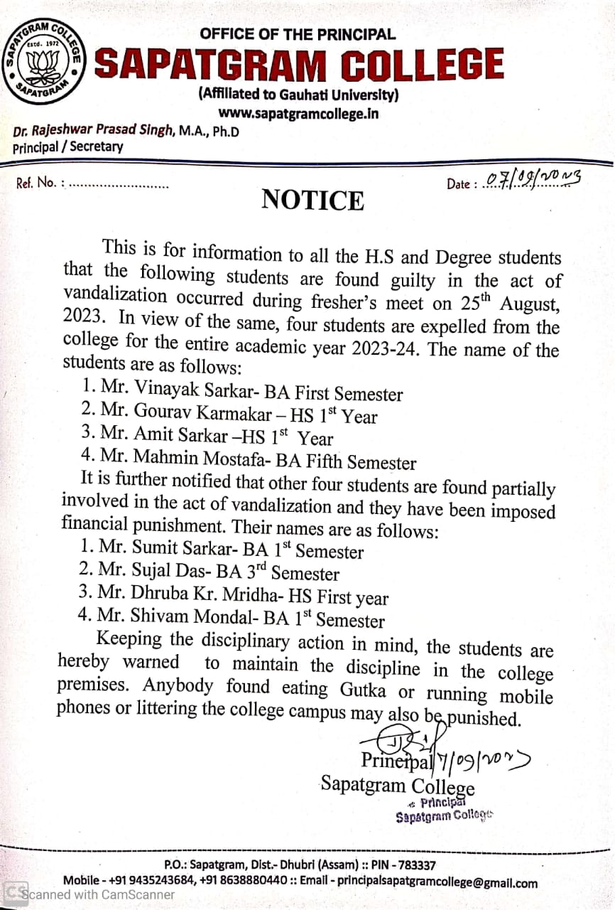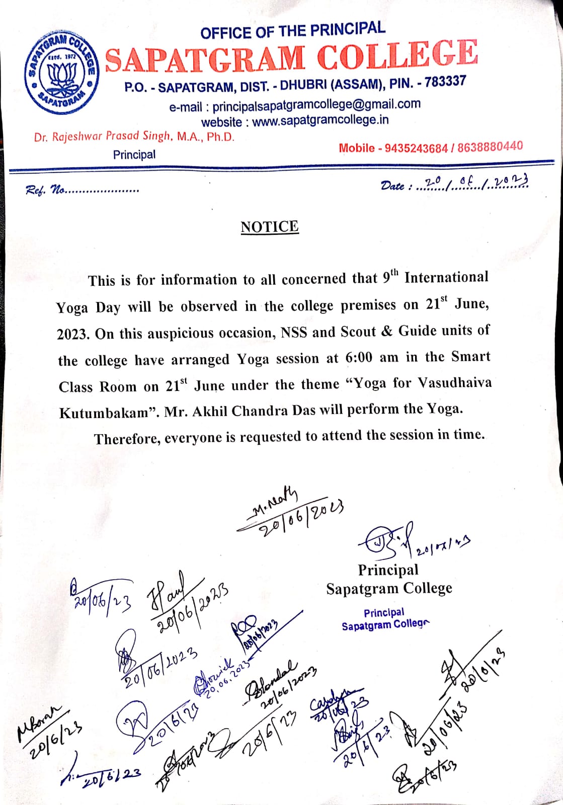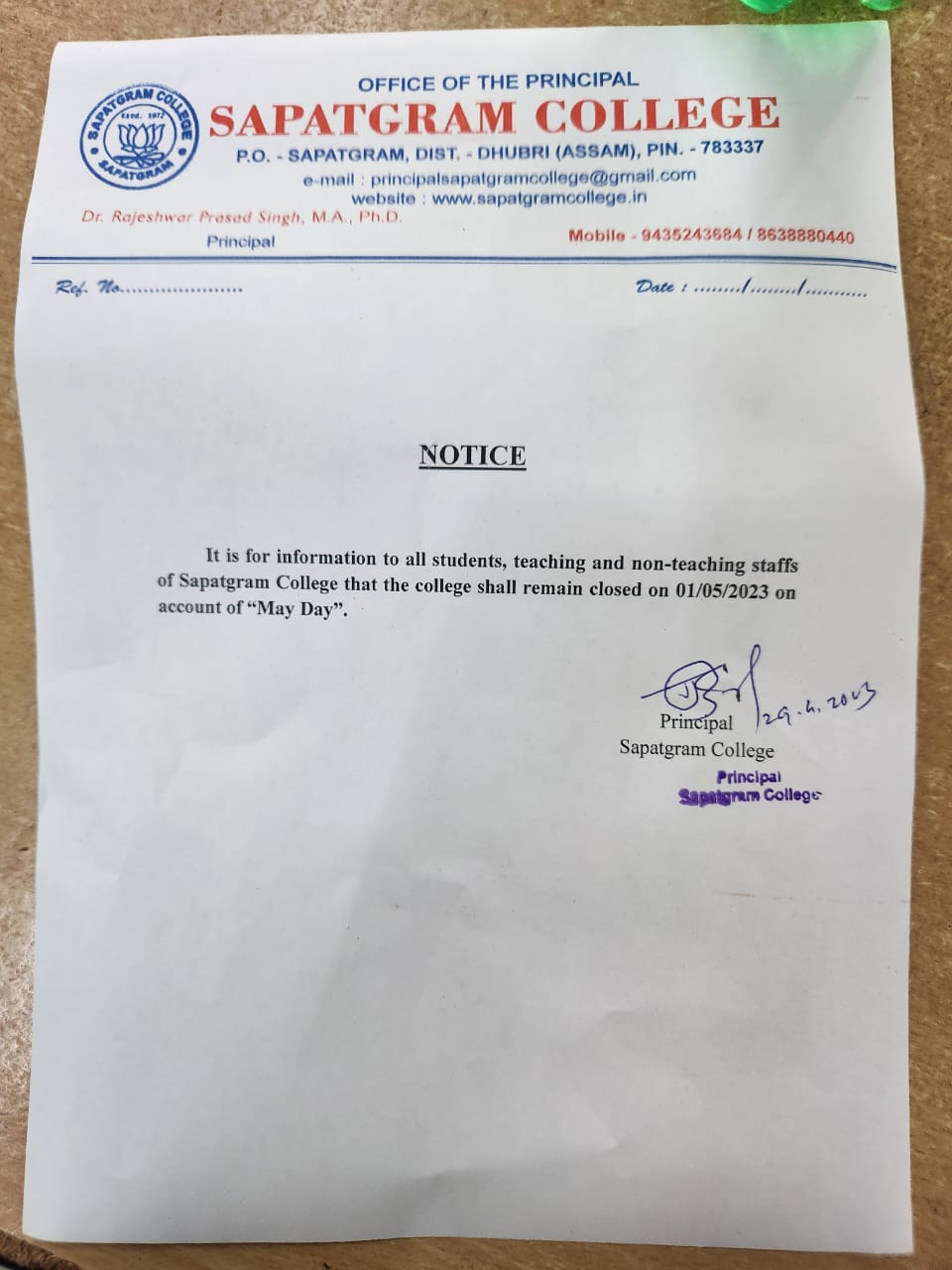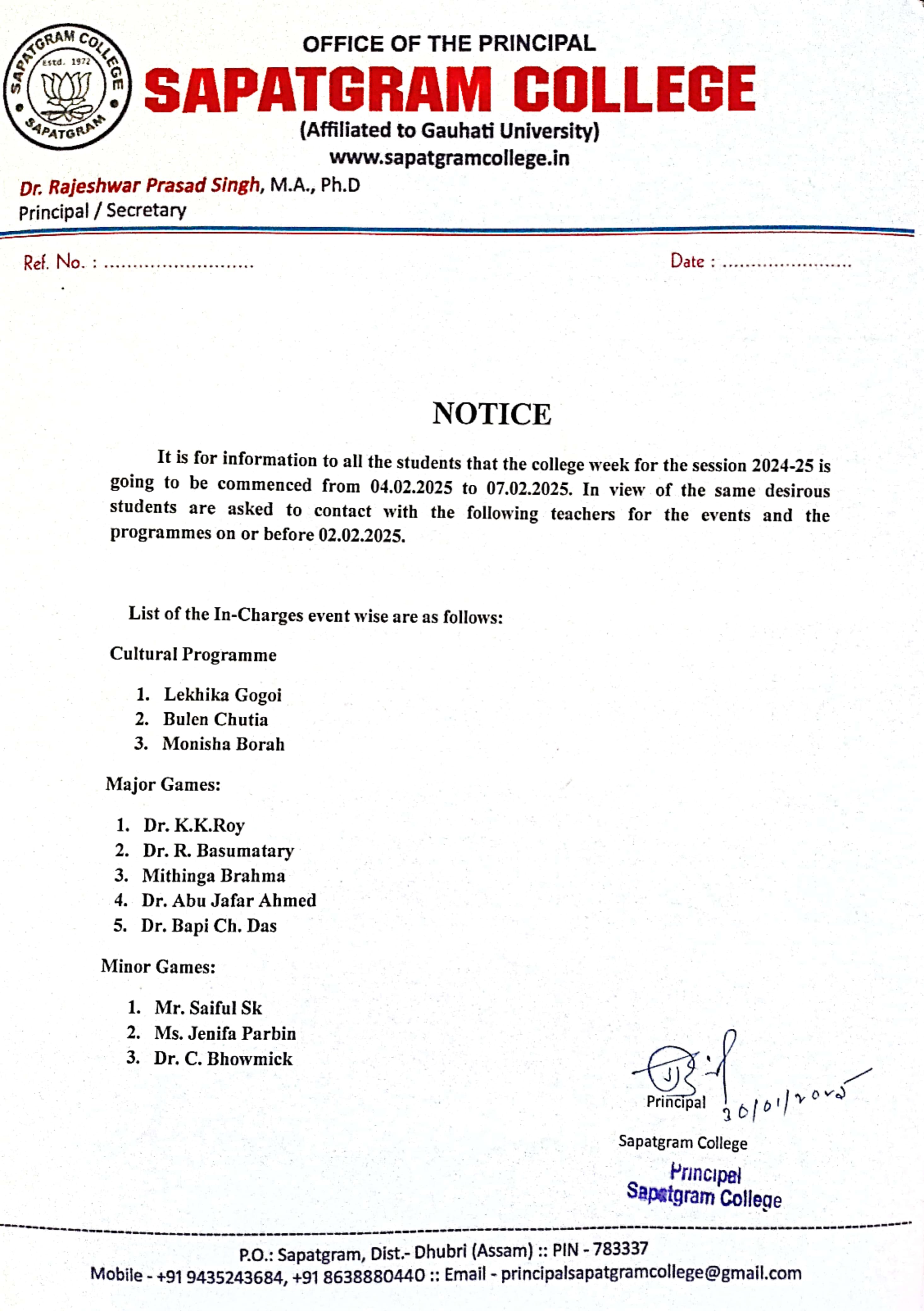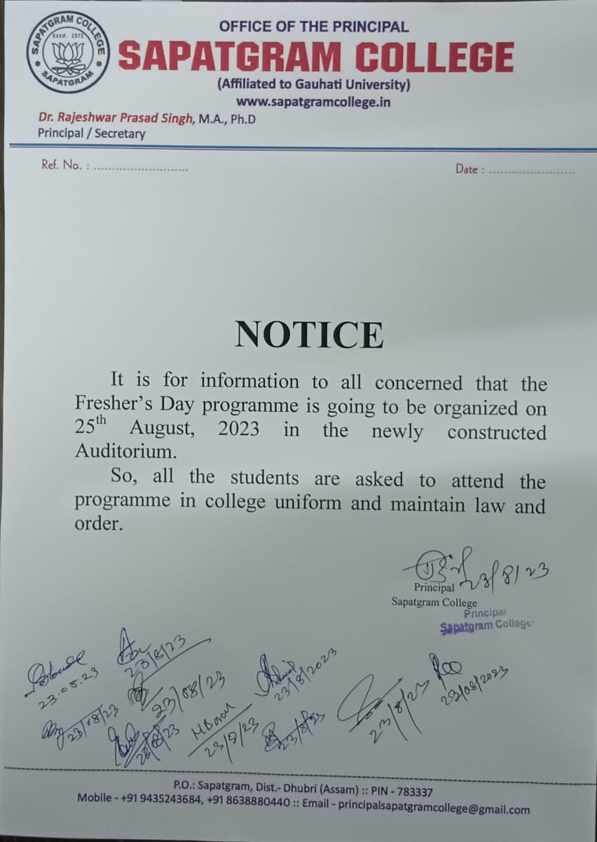 - Notice regarding Celebration of 54th Foundation Day of Sapatgram College View