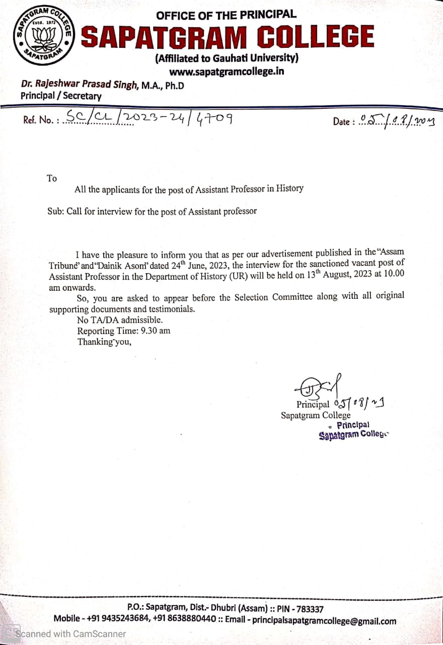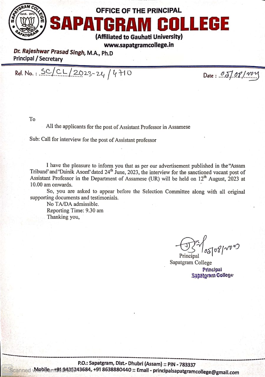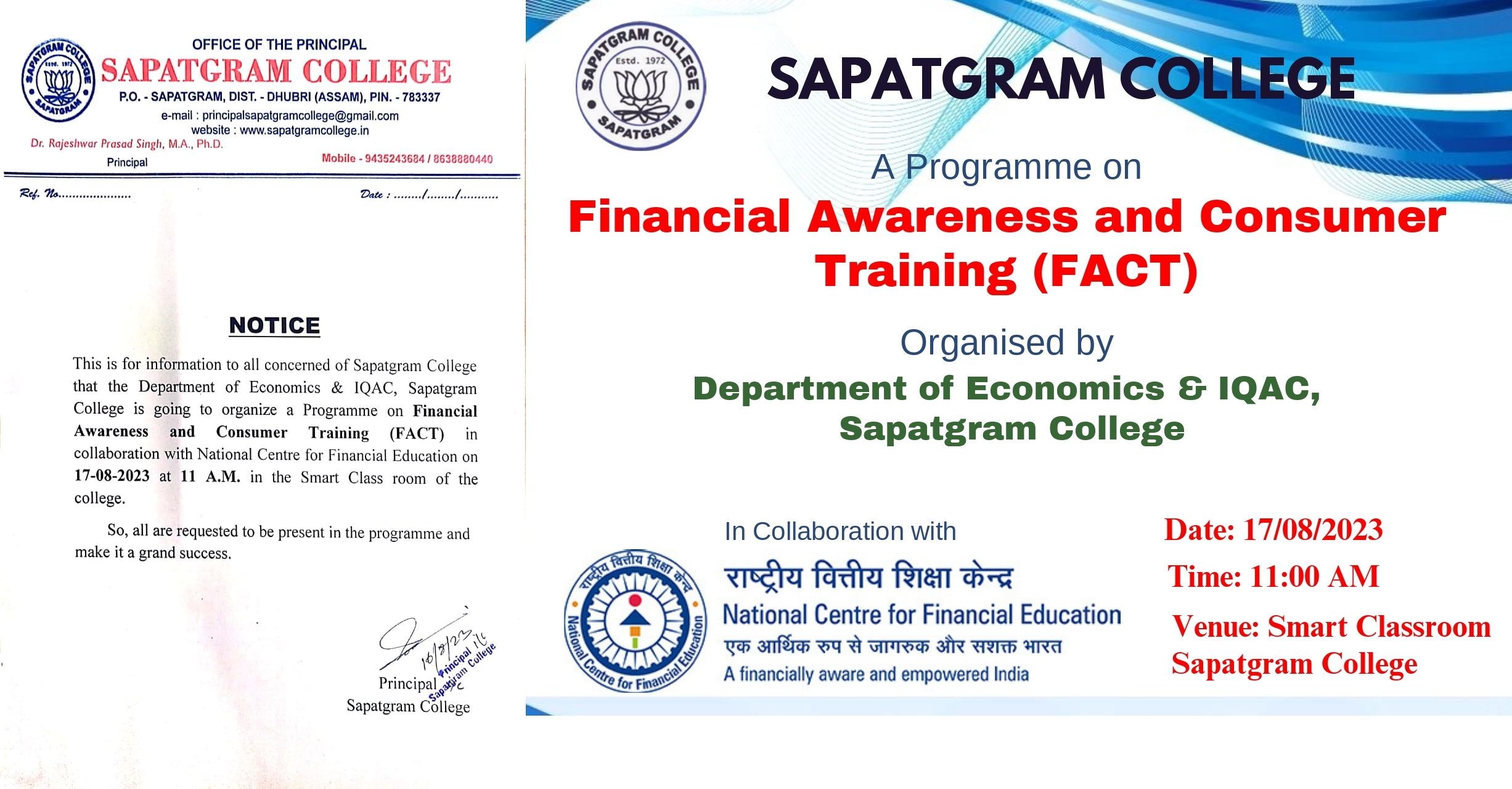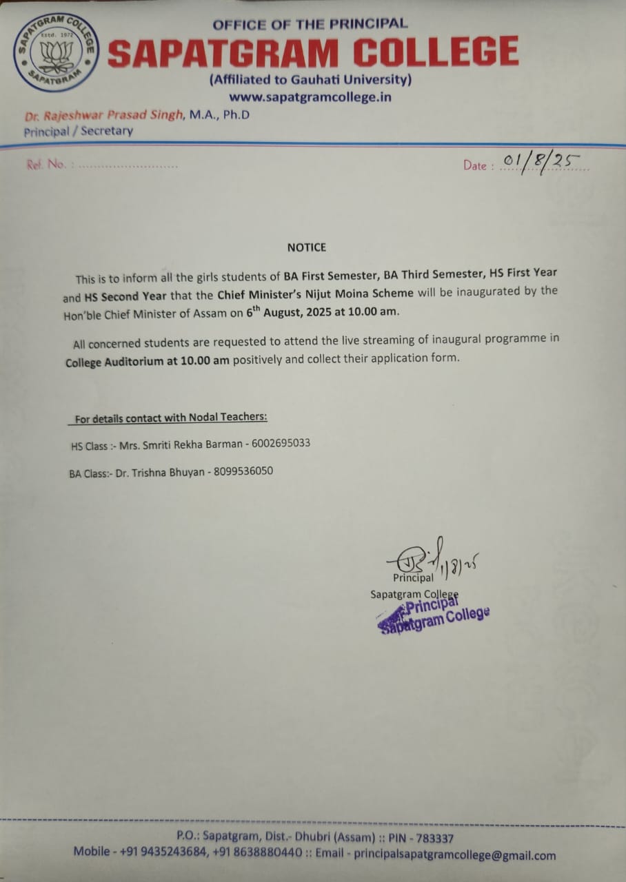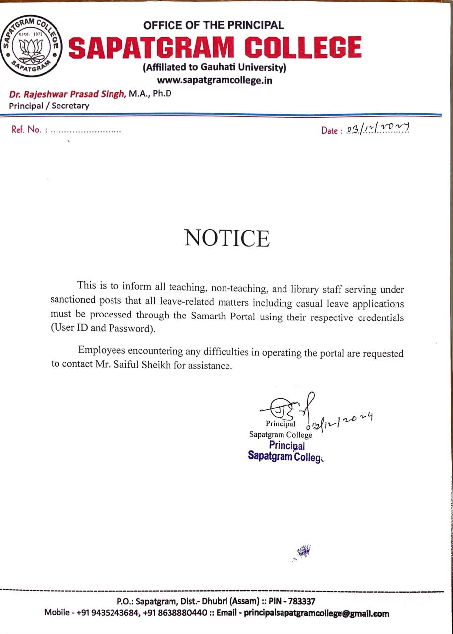 - Notice regarding Celebration of 54th Foundation Day of Sapatgram College View