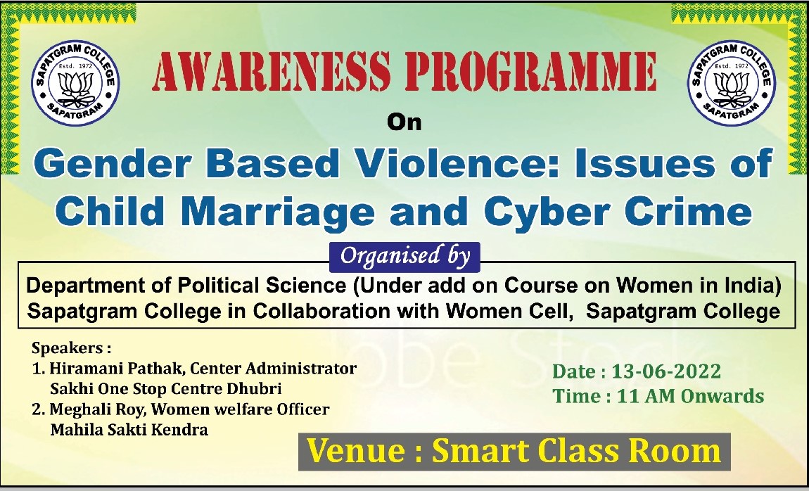- Awareness Programme on Gender Based Violence: Issues of Child Marriage and Cyber Crime View