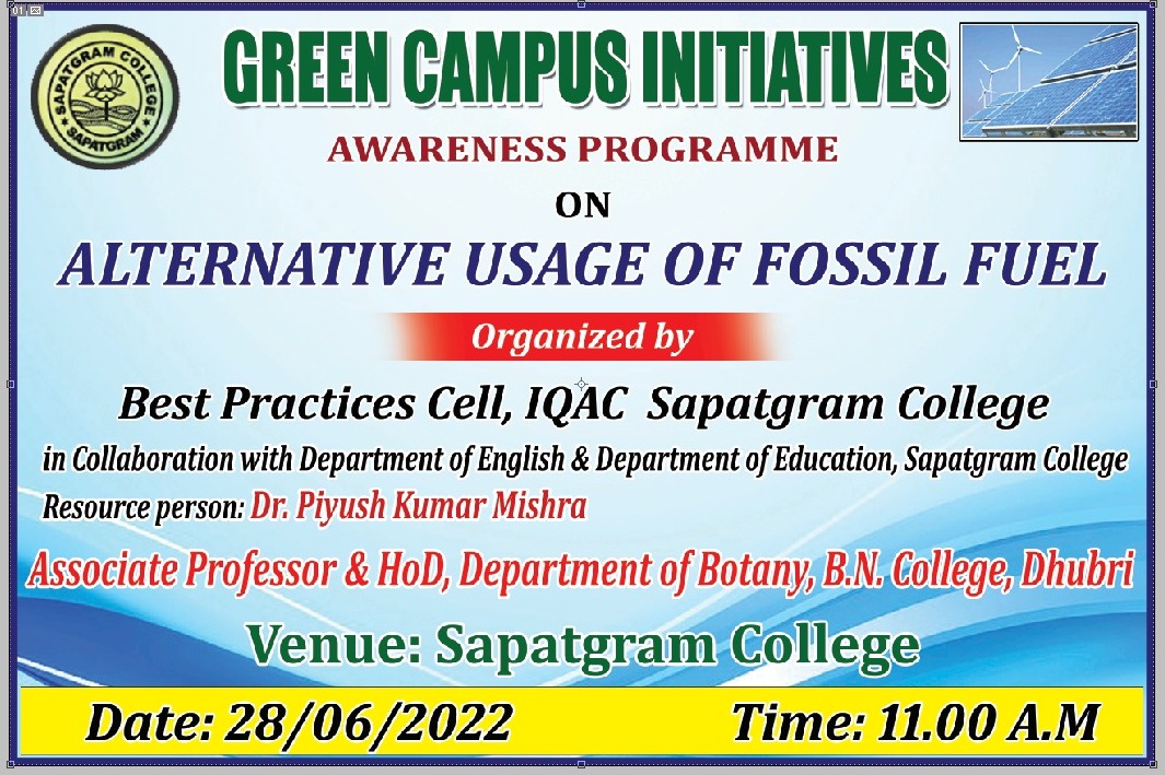 - GREEN CAMPUS INITIATIVES: Awareness Programme on Alternative Usage of Fossil Fuel View