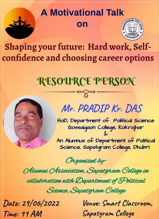 - A Motivational Talk on Shaping your future: Hard Work, Self-confidence and choosing career options View