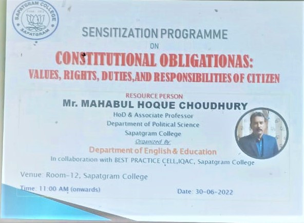 - Sensitization Programme on Constitutional Obligations: Values, Rights, Duties and Responsibilities of Citizen View