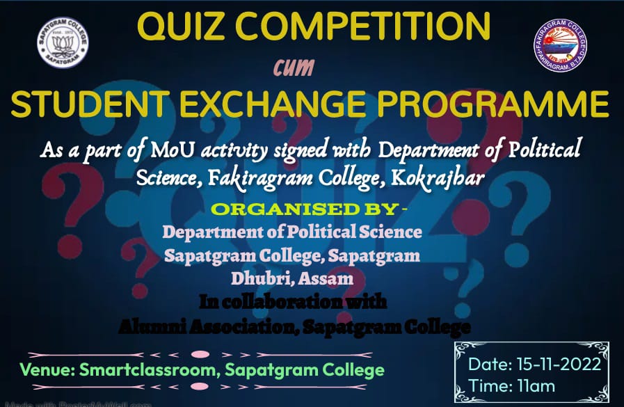 - Quiz Competition cum Student Exchange to be organised by Deptt. of Political Science View
