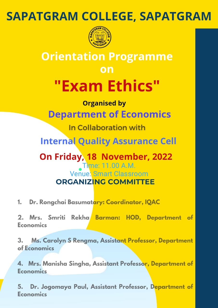 - Orientation Programme on Exam. Ethics to be organised by Dept. of Economics View