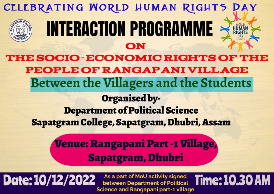 - Interaction Programme on the Socio-Economic Rights of the People of Rangapani Village, Department of Political Science, View