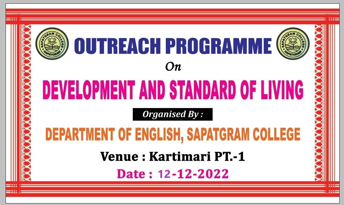 - Outreach Programme on Development and Standard of Living, Department of English, Sapatgram College, Venue : Kartimari PT.-1. View