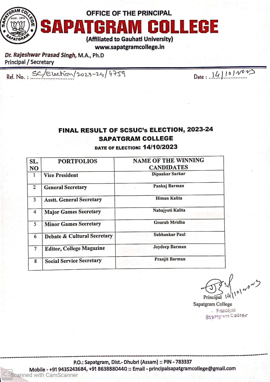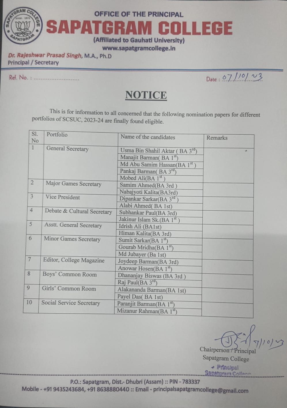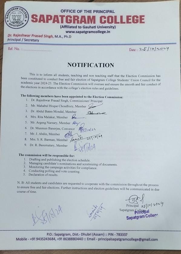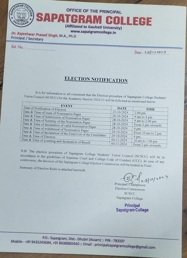 - Notice for the students regarding the Election Procedure of Sapatgram College Students' Union Council (SCSUC) for the academic session 2024-25 View